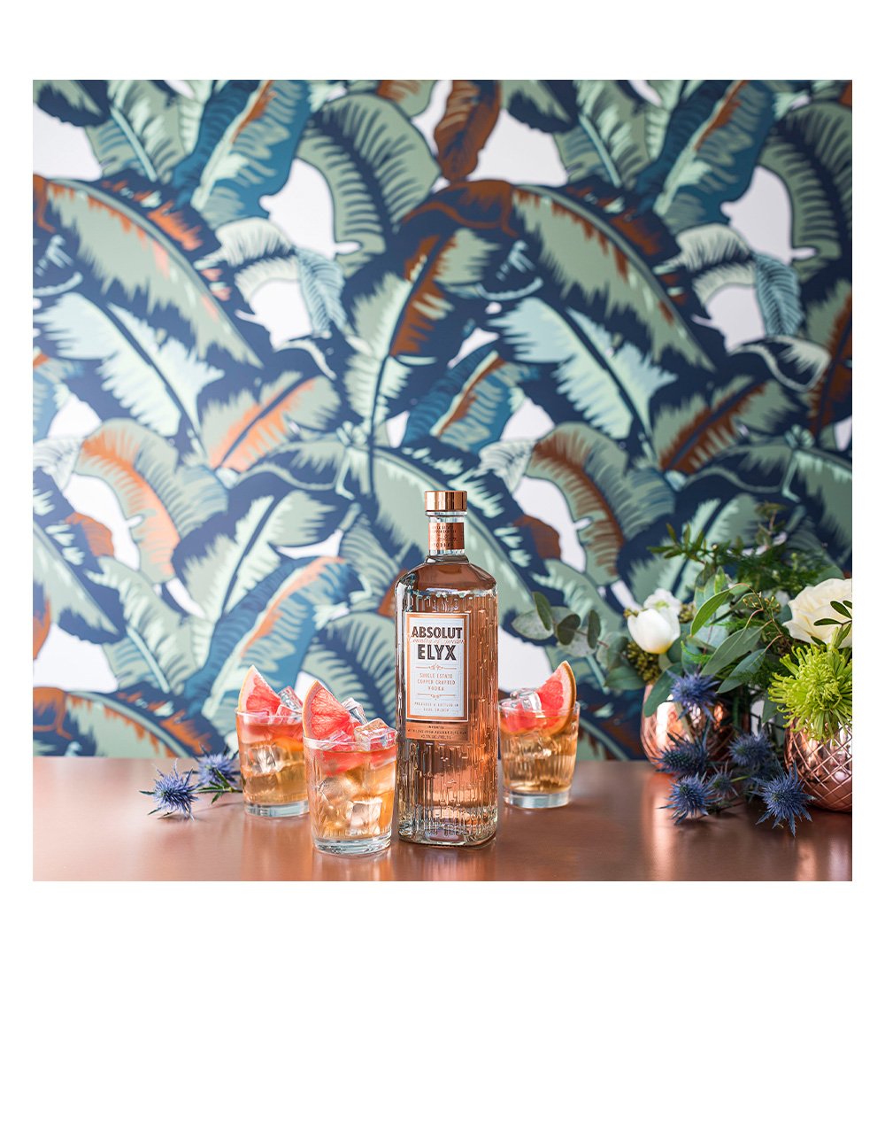 ABSOLUT ELYX® VODKA. PRODUCT OF SWEDEN. 42.3% ALC./VOL. DISTILLED FROM GRAIN. ©2019 IMPORTED BY ABSOLUT SPIRITS CO., NEW YORK, NY.