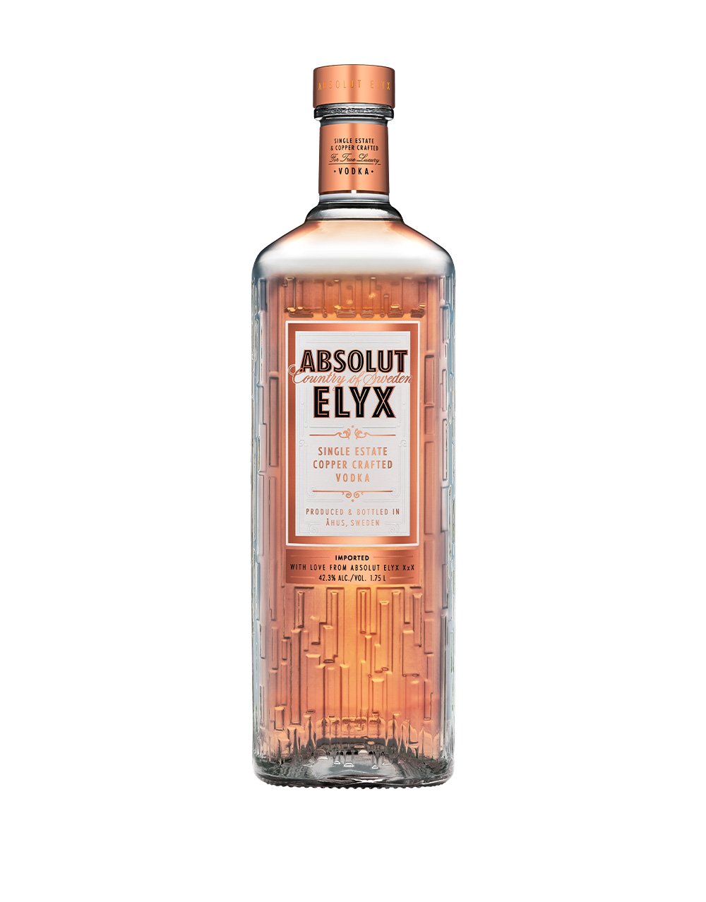 ABSOLUT ELYX® VODKA. PRODUCT OF SWEDEN. 42.3% ALC./VOL. DISTILLED FROM GRAIN. ©2019 IMPORTED BY ABSOLUT SPIRITS CO., NEW YORK, NY.